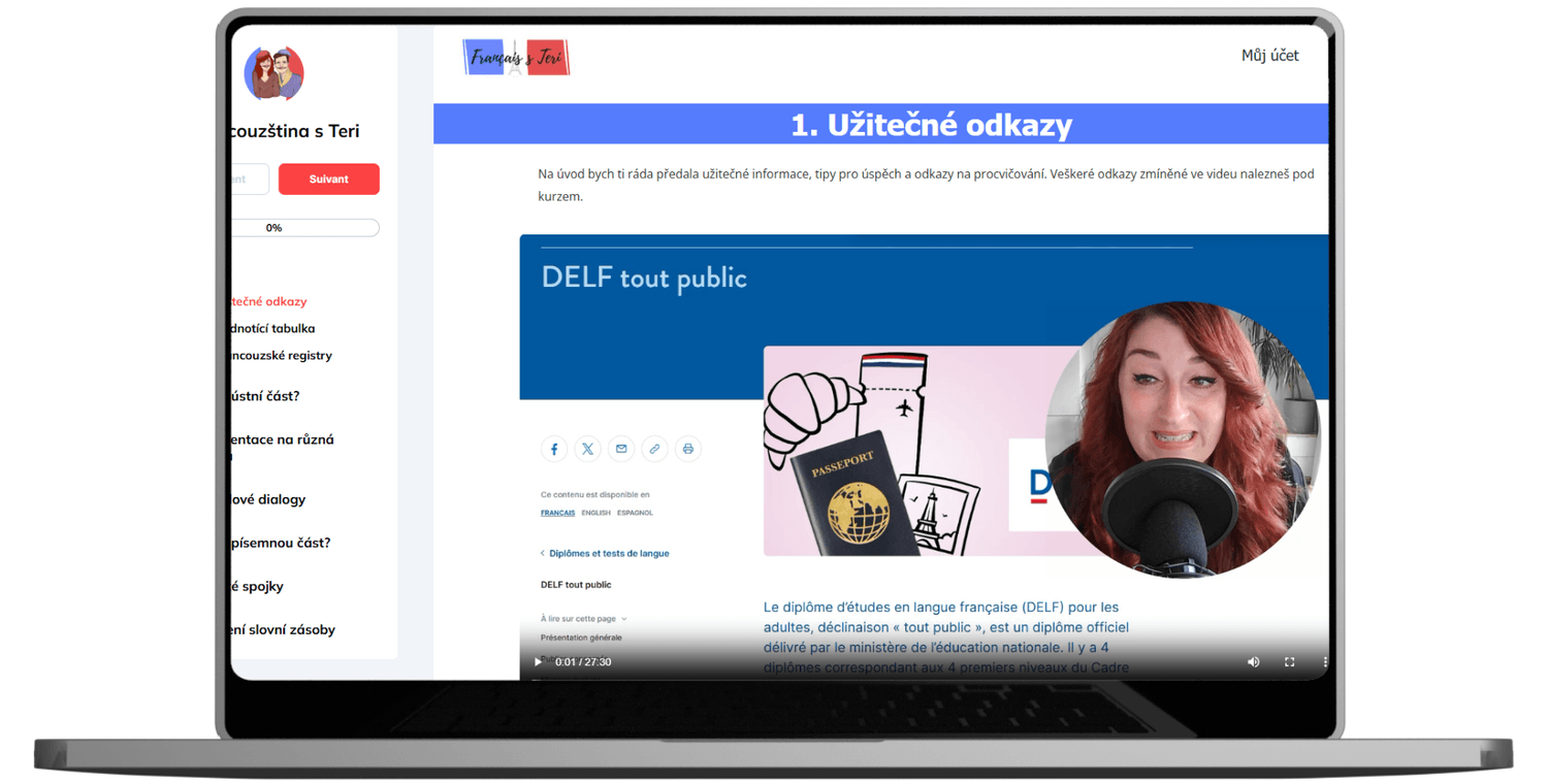 Tento kurz tě systematicky provede vším, co opravdu rozhoduje o úspěchu u zkoušky DELF a DALF. Přesně víš, co říct, jak to říct a za co dostaneš body. Přestaneš dělat chyby, které tě zbytečně stojí body. A hlavně – půjdeš ke zkoušce s klidem a jistotou.