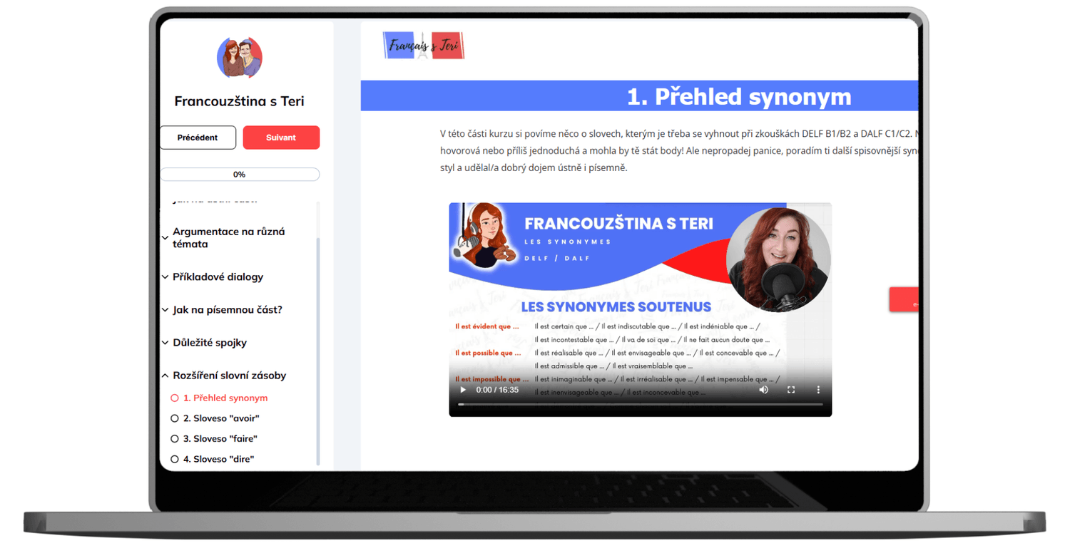 V této části se zbavíš základních a často nadužívaných slov a naučíš se je nahrazovat přirozenějšími a pokročilejšími výrazy. Osvojíš si práci se synonymy a zaměříš se na klíčová slovesa, jako jsou dire, faire a avoir, která posuneš na úplně jinou úroveň.